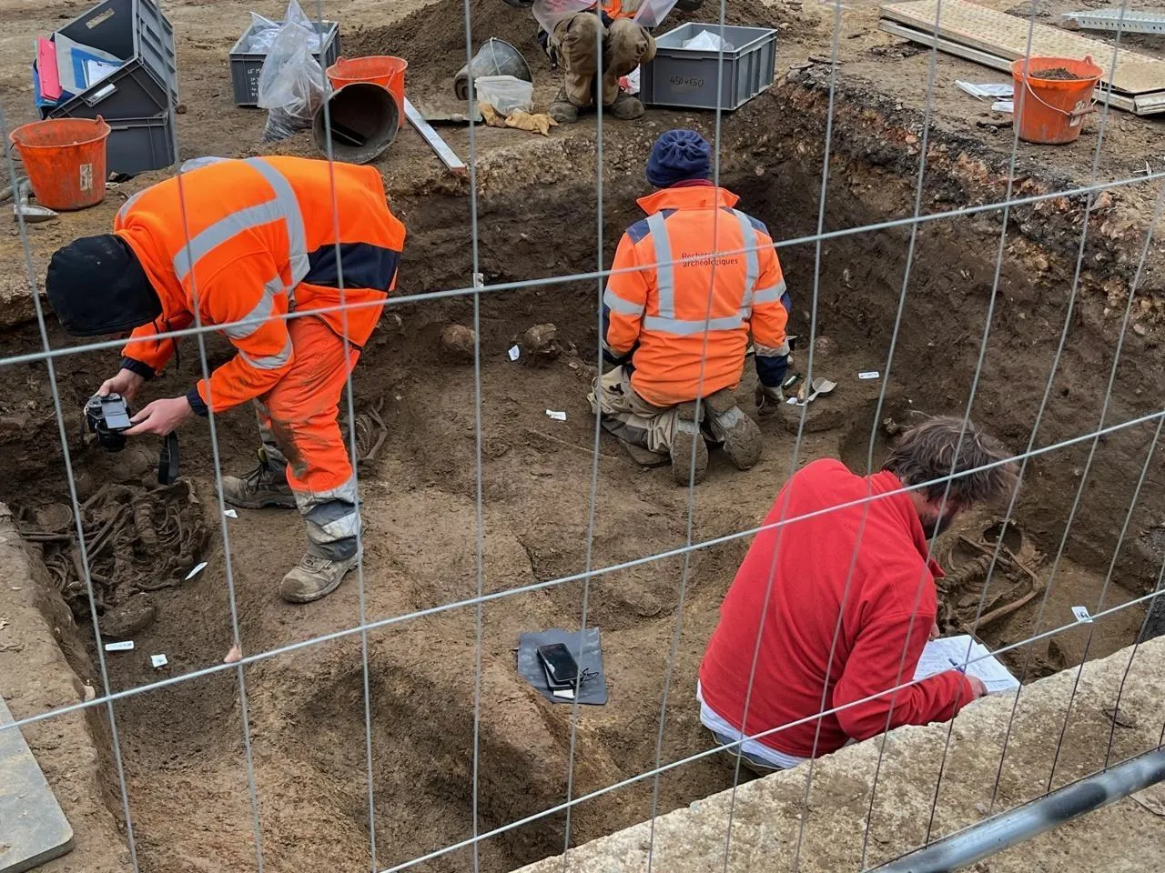 Les fouilles se poursuivaient place Washington, au Mans (Sarthe) fin novembre 2025. 800 squelettes ont été découverts. © Ouest-France