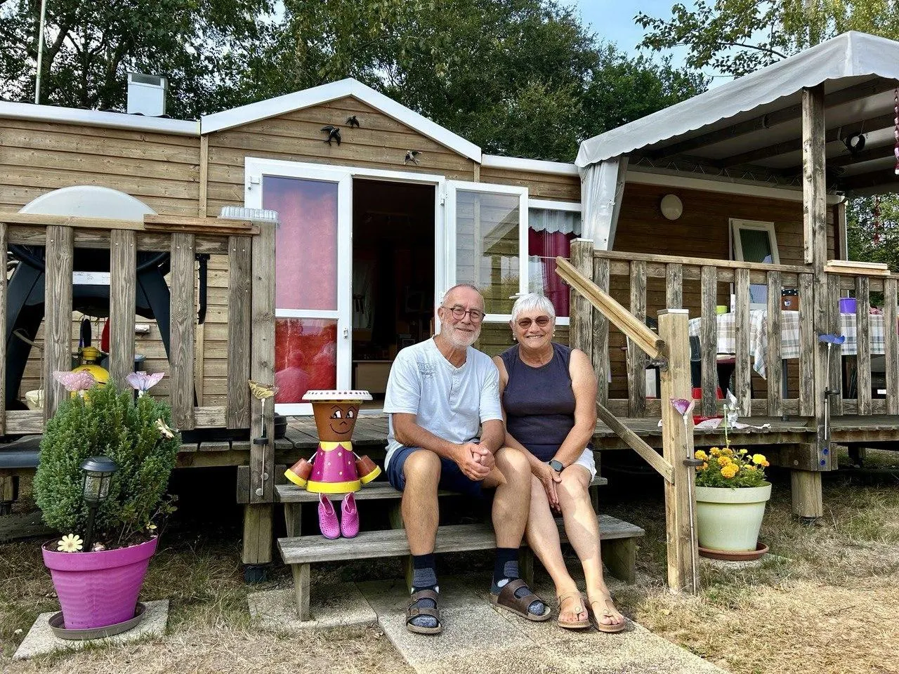 Pour ce couple de Nantes, venu pour la première fois à Huttopia à Coco Plage, c’est l’occasion de revoir ses proches. © Ouest-France