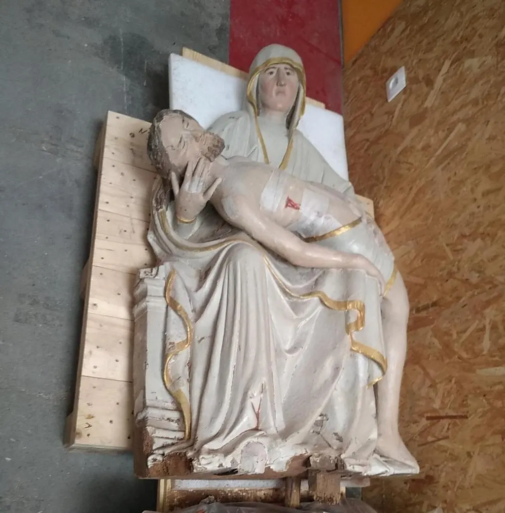 La Pietà de l’église d’Aigné a été enlevée pour être restaurée, sitôt la convention signée. © Le Maine Libre