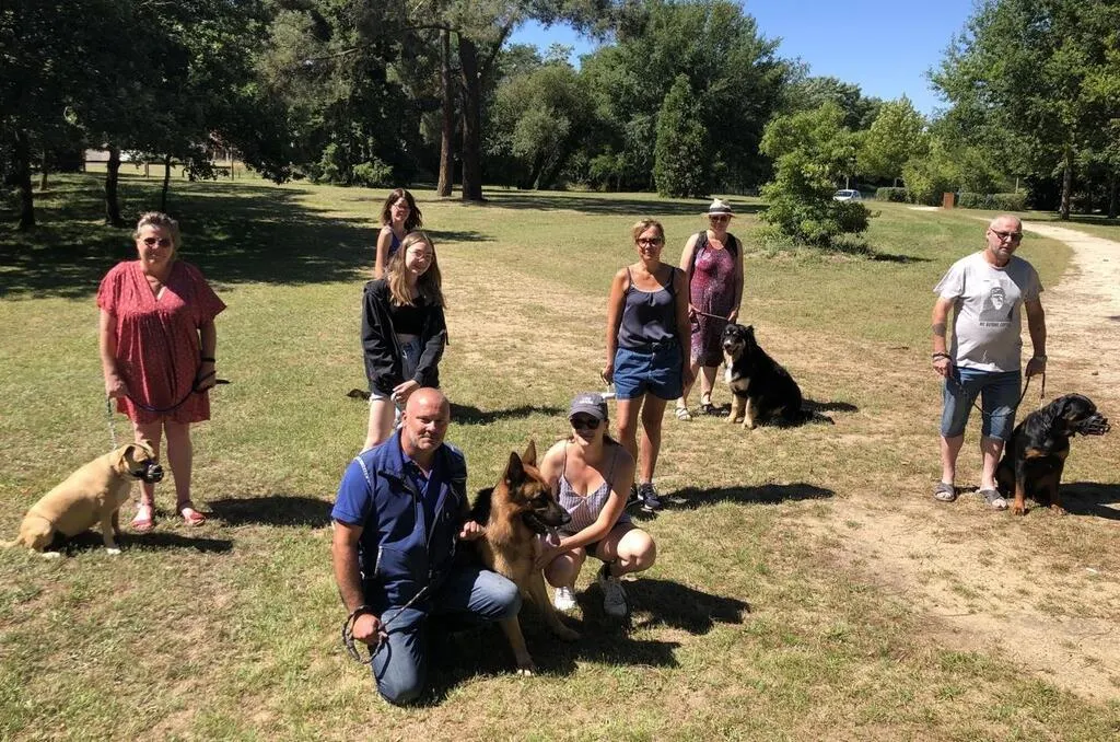 Dimanche 10 juillet 2022, on pouvait croiser au matin au parc des Sittelles de Monfort-le-Gesnois un attroupement inhabituel, au point commun évident : des hommes, femmes, couples avec leur chien, de toutes tailles et toutes races.