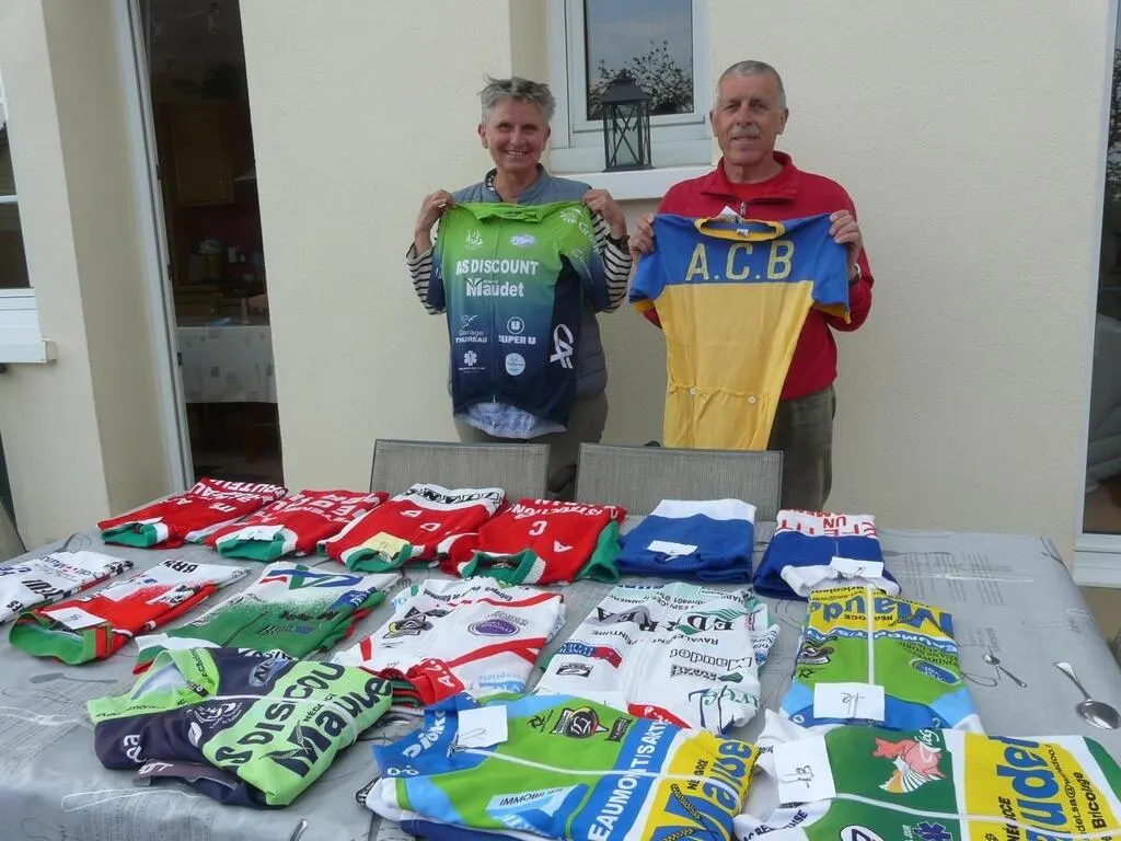 Cinquante ans séparent le maillot actuel tenu par Annick du tout premier maillot du club que tient Didier. © Le Maine Libre