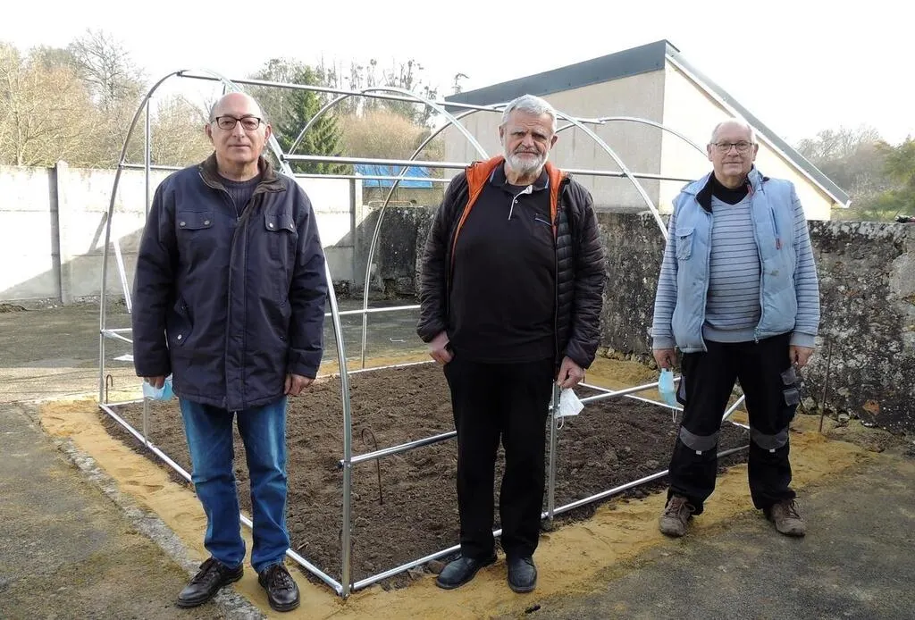 Louis Pottier, maire de Berfay, et ses deux adjoints, sont venus prêter main-forte à Thierry Bagiau, agent communal, chargé d’installer la serre sur l’ancien bac à sable. Au début, nous avions pensé à recouvrir la terre d’une simple bâche mais cela n’aurait pas été très pratique. Le choix du conseil municipal a été d’installer une serre tunnel de 9 m² dans laquelle les enfants pourront découvrir les joies du jardinage avec leurs professeurs respectifs. Et si cela pousse bien, ils pourront même déguster leurs fruits et légumes.