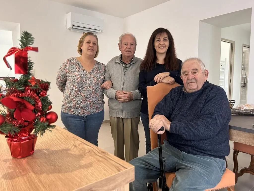 Sandra Fernandez et Karine Masse ont créé une colocation pour seniors à Challes. Elles ont accueilli, le 6 novembre 2023, les deux premiers résidents, Bernard et Fernand (assis). © Ouest-France