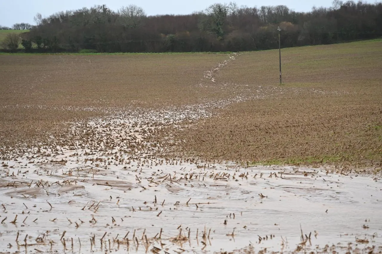 Dans la campagne autour de la Mignonne, les fortes pluies du début d’année ont laissé leur empreinte. © Jean-François Glinec