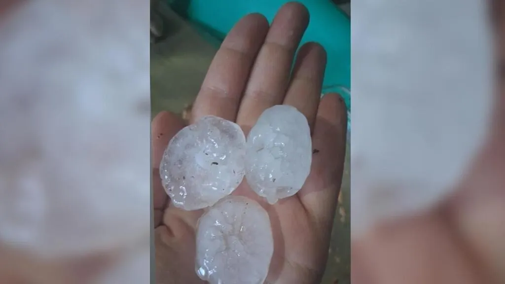 Des grêlons impressionnants sont tombés à Rouessé-Vassé ce mercredi 25 juin 2025. © Témoin - Stéphanie Chalopin