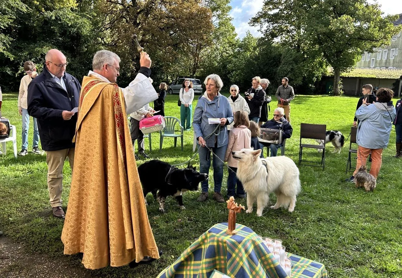 C’est la deuxième année consécutive que le 4 octobre, Journée mondiale des animaux, le père Christian du Halgouët organise cette bénédiction. © Le Maine Libre