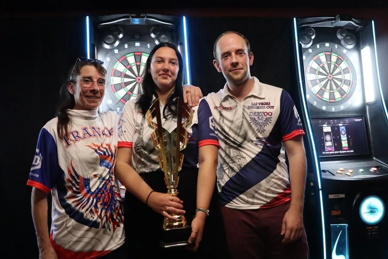 Virginie Bringuet, Camille Logeais et Alan Garcia vont représenter le Pub Elysée de Sablé-sur-Sarthe au World darts Championship Phoenix Darts du 5 au 8 décembre 2025 à La Corogne en Espagne. © Ouest-France