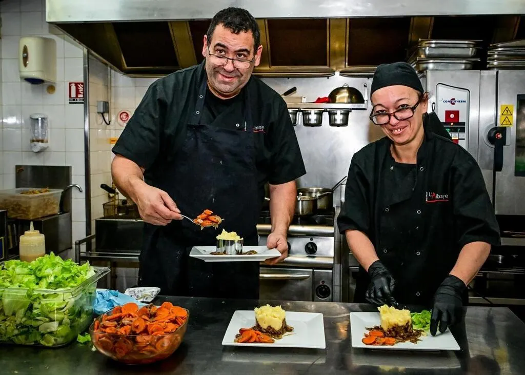 David Smith, le patron du Bistrot de l’abbaye à Tuffé-Val-de-la-Chéronne ici avec sa cuisinière Léa Marchand, cartonne dans le centre-bourg. Il est candidat à la reprise du Chalet du lac. © Le Maine Libre – Yvon LOUÉ