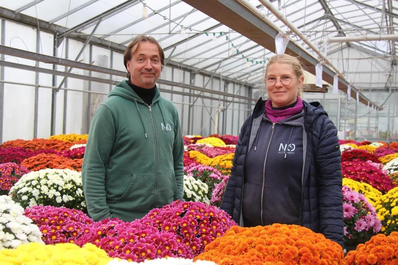 Aux Serres de Julie, tenues par Julie Bansept et Gwenaël Fouquet, à Bazouges-Cré-sur-Loir (Sarthe), les jours qui précèdent la Toussaint sont toujours déterminants pour bien finir la saison. © Ouest-France