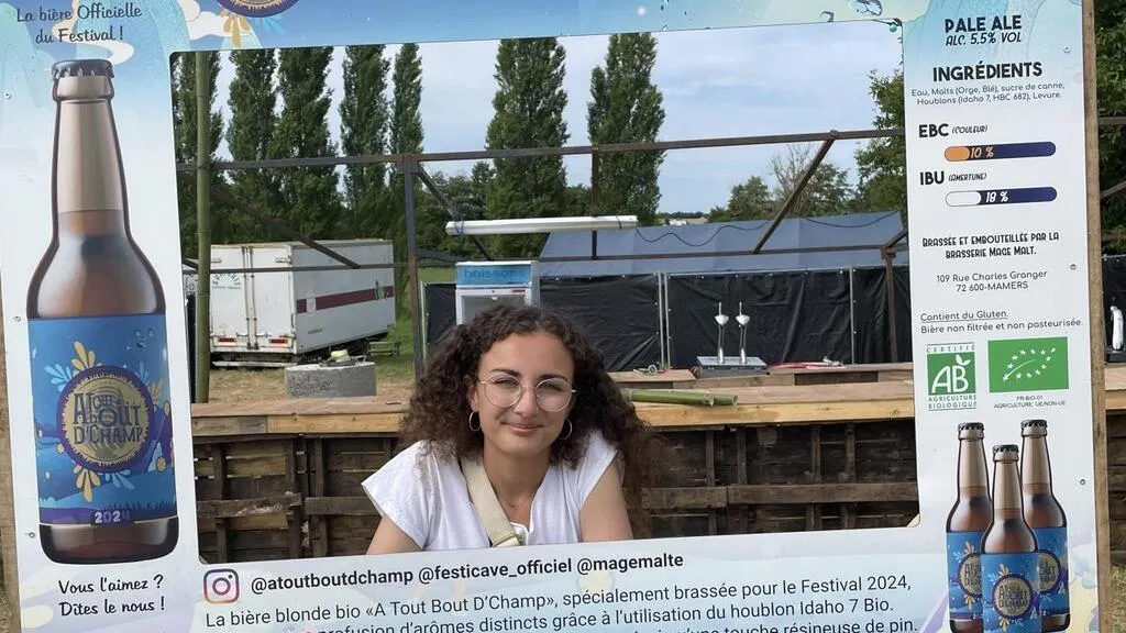 Cloé Hérisson, en charge de la communication, présente la nouveauté 2024 d’À Tout bout d’champ : la bière du festival. © Le Maine Libre