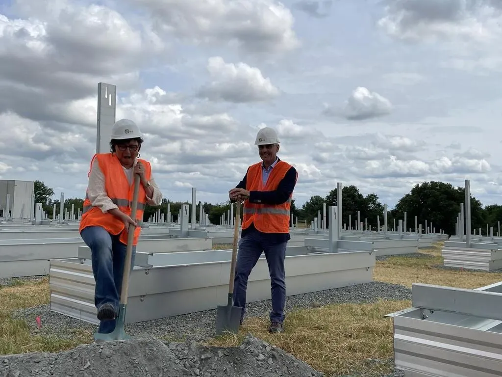 Brigitte Têtu-Edin, maire de Vion, et Daniel Chevalier, président du Pays sabolien, ont donné quelques pelletées symboliques. © Le Maine Libre