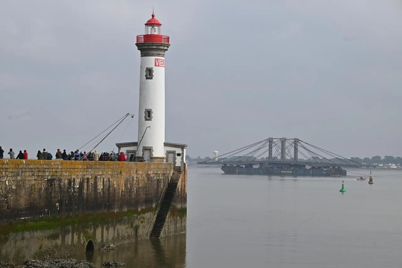 Samedi 7 mars, plusieurs centaines de personnes se sont pressées sur les plages ou les jetées de Saint-Nazaire (Loire-Atlantique) pour admirer le passage du très attendu tablier du pont Anne-de-Bretagne. Le convoi chargé de transporter ce mastodonte métallique doit arriver à Nantes dans la soirée.