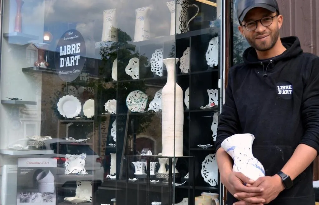 Yassine Boutaleb est arrivé à Malicorne-sur-Sarthe en 2015. Après quatre années passées au Bourg-Joly, il s’est mis à son compte dans différents endroits de la Cité de potiers tout en donnant des cours au musée de la faïence.