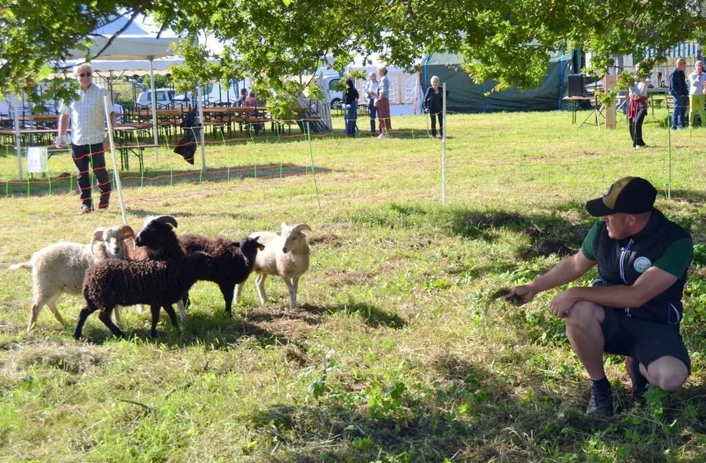 Alexis Lacour avec quelques-uns de ses moutons à la Fête Bio dimanche 25 août 2024. © Le Maine Libre