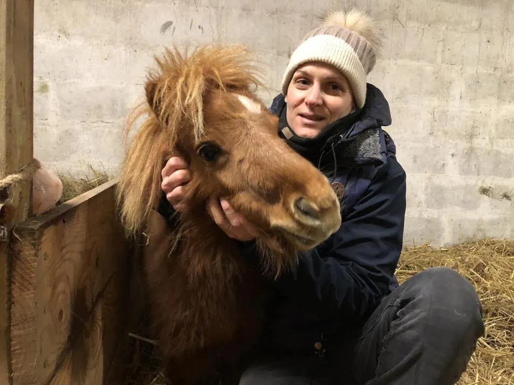 Ninja n’est pas bien haut sur pattes. C’est un mini-shetland. La mascotte de la ferme pédagogique du Fan qu’Hélène Perthue a ouvert en septembre 2024 à Bazouges-Cré, en limite de la commune de Fougeré (Maine-et-Loire).