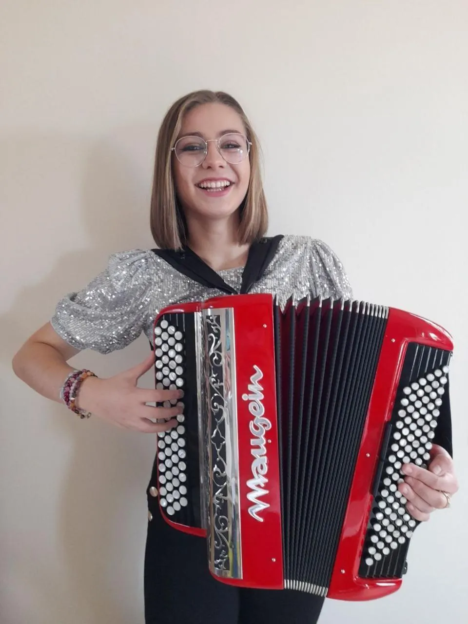 Avec son sourire et ses chansons, Adèle Martin dépoussière, s’il fallait, l’image de l’accordéon. © Photo Adèle Martin