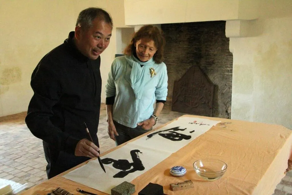 À Parcé-sur-Sarthe, Michèle Gosnet-Frassetto a invité l’artiste chinois Chen Zhichao, début mai 2024. C’est le fondateur du musée de Chengyang, en Chine.