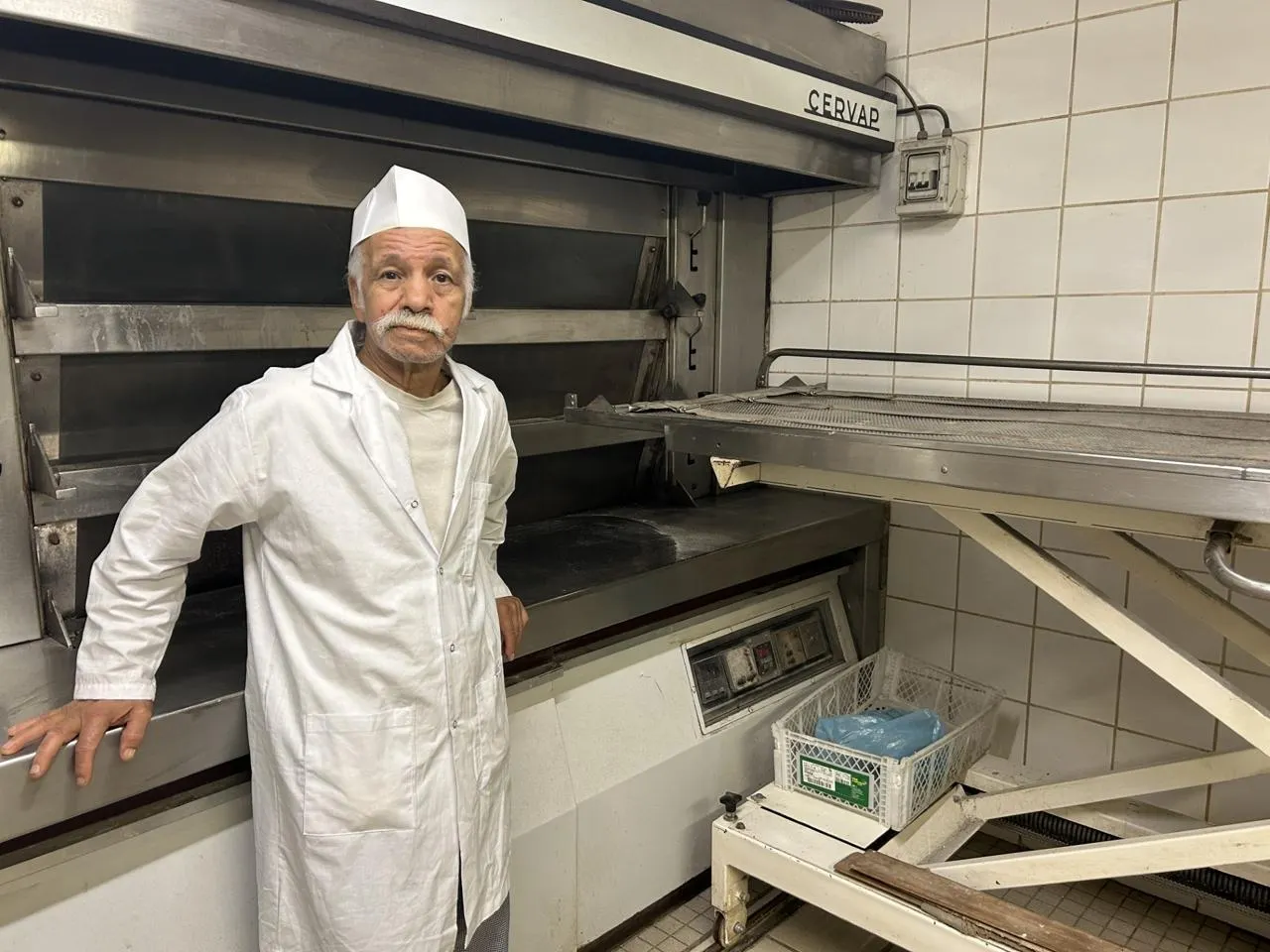 Ayed Zaroui devant le fournil de la boulangerie Aux délices de Sargé. © Ouest-France