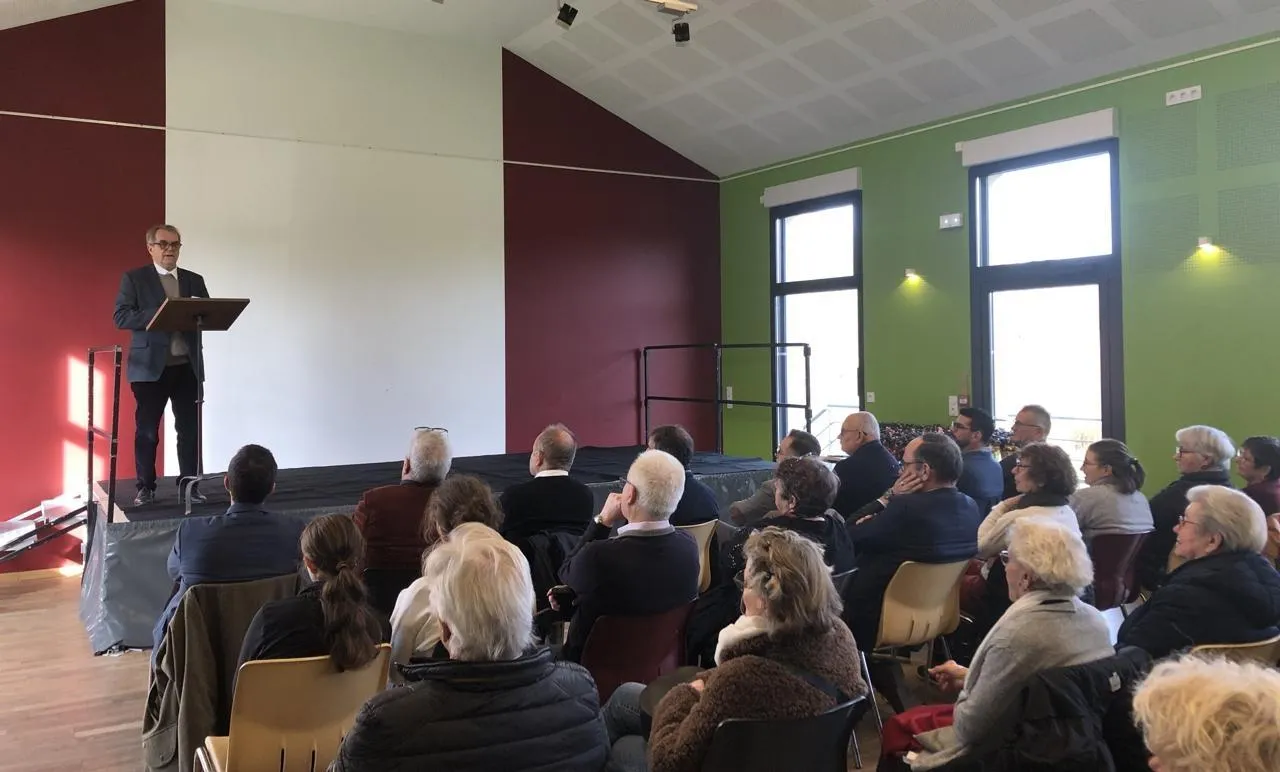 Les habitants d’Asnières-sur-Vègre (Sarthe) sont venus assister aux derniers vœux de leur maire Jean-Louis Lemarié, dimanche 11 janvier 2026. © Ouest-France