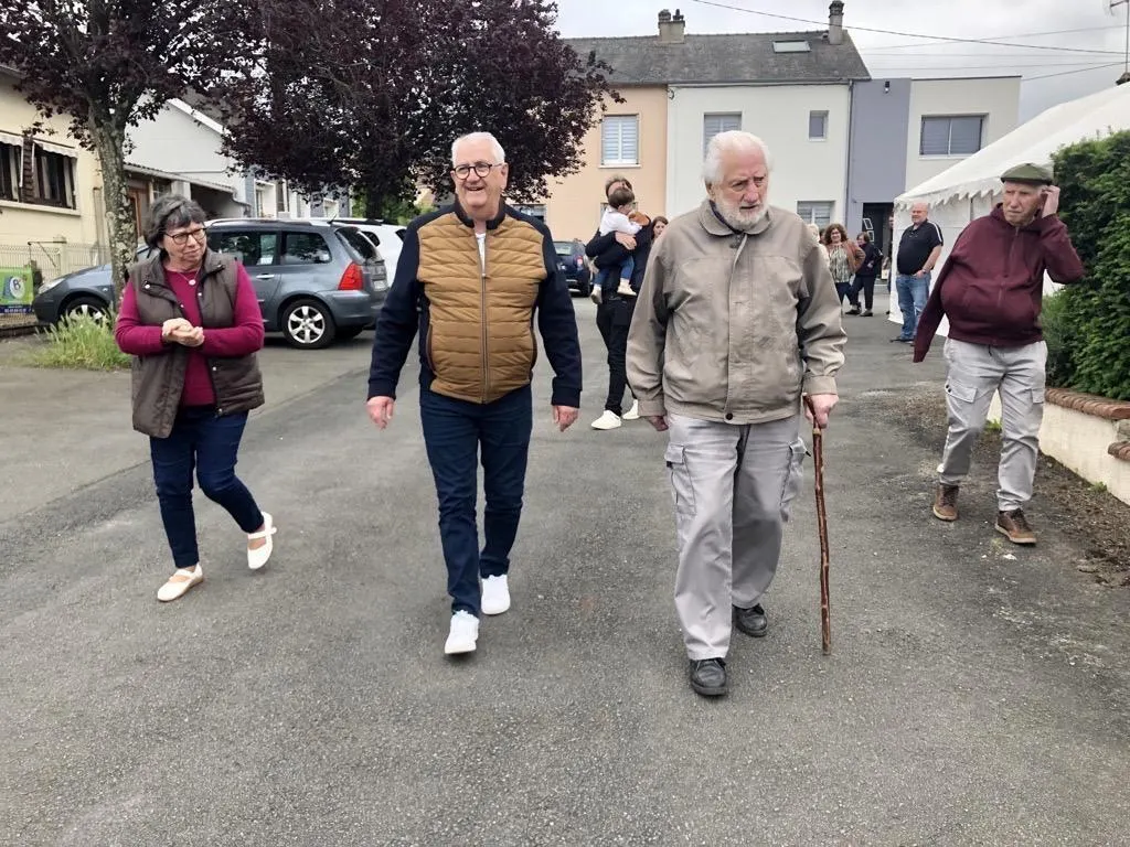 Les habitants de la place de l’Oasis et de la rue Jean-François, au Mans, ont fêté les 100 ans de Raymond Galbrun (au premier plan sur la droite), ce samedi 1er juin 2024. © Le Maine Libre