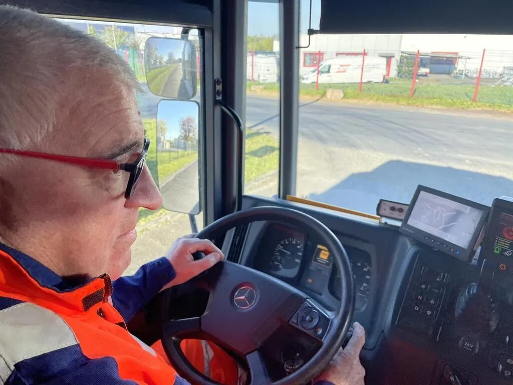 Christophe au volant de son camion benne un jour de tournée entre Sablé-sur-Sarthe et Pincé. © Ouest-France