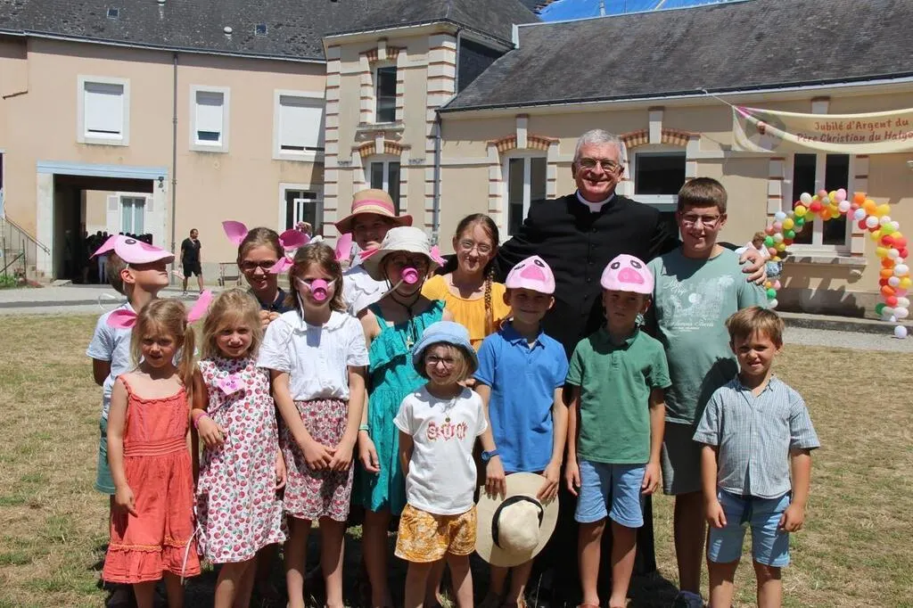 Au menu : du cochon, que l’on retrouvait aussi partout dans la décoration et les déguisements des enfants, comme un clin d’œil au père, dont c’est l’animal fétiche, en bon défenseur de la ruralité, natif de la Sarthe. « Je suis né au Mans, j’ai été ordonné à la cathédrale Saint-Julien, j’y ai été prêtre pendant douze ans et six ans à Savigné-L’Évêque », après un passage de six ans à Rome. Et avant cela ? « J’étais à l’ISG, une école de commerce à Paris, un milieu où j’ai gardé des amis qui sont même là aujourd’hui, avec ma famille. »