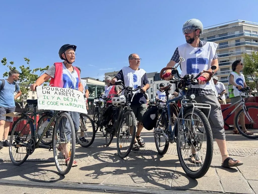 Un arrêté municipal interdit les rues piétonnes aux vélos et aux trottinettes le samedi dans le centre-ville du Mans (Sarthe). Pas du goût des cyclistes, qui ont manifesté ce samedi 21 juin 2025.