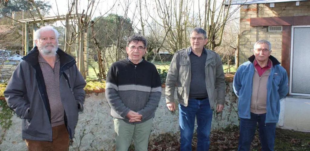 De gauche à droite, Yannick Livet, Domnin Rabréaud, Guy Fourmy et Bernard Christians, dans le jardin derrière la mairie de Challes. © Ouest-France