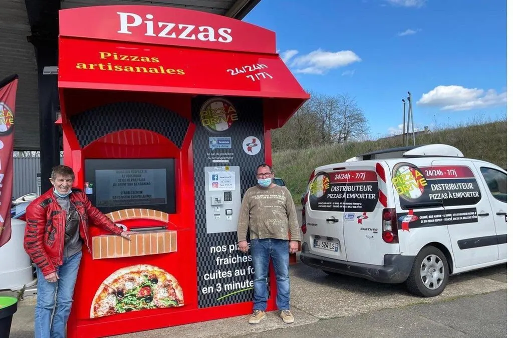 Le kiosque « Pizza Drive » a été mis en place il y a un mois dans la zone de la Bretonnière, à Cherré-Au, sur le parking de l’enseigne Auto + 72. Philippe Plu, qui a tenu 20 ans un bar-hôtel-restaurant au Mans, a installé ce distributeur qui permet de s’approvisionner en pizzas, 24 heures sur 24, et 7 jours sur 7.