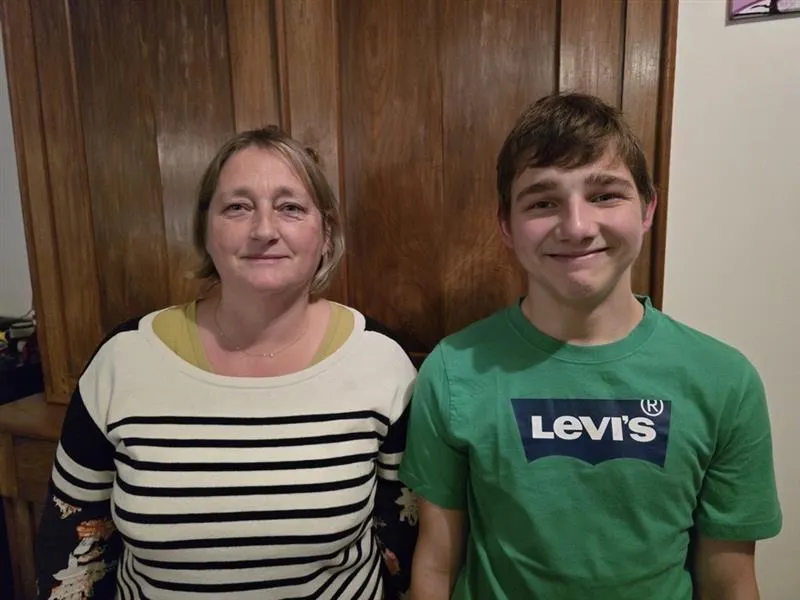 Céline Pogoda et son fils Adonis, 15 ans, atteint d’une tétrasomie 9P. © Céline Pogoda