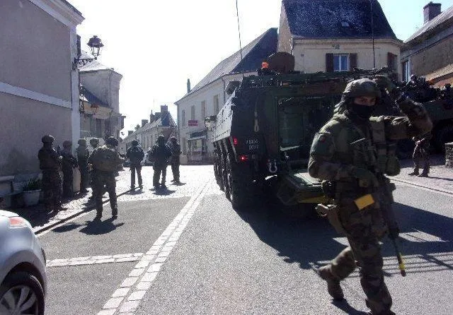 Des militaires ont pris position dans les rues du bourg. © Le Maine Libre