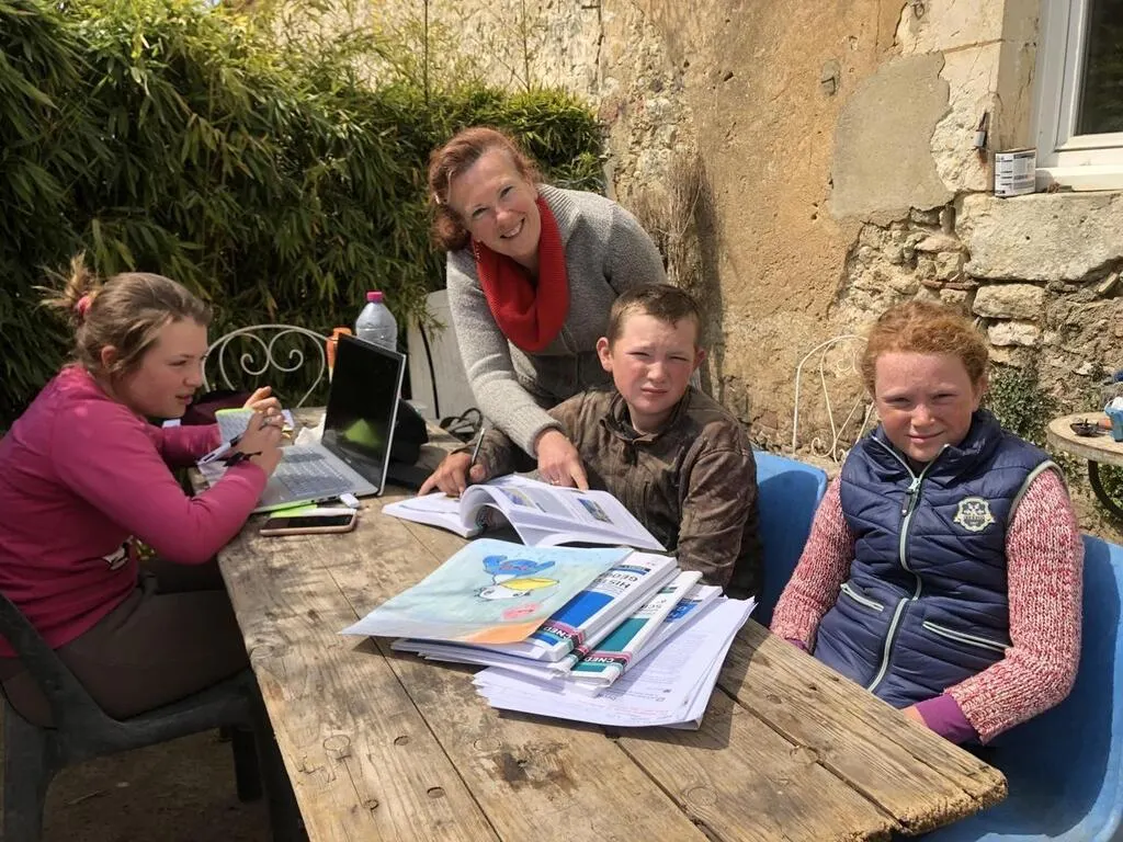 Paul et Alice suivent l’école à la maison, guidés par leur maman, sous les yeux de leur sÅ“ur aînée, Blanche. © Le Maine Libre