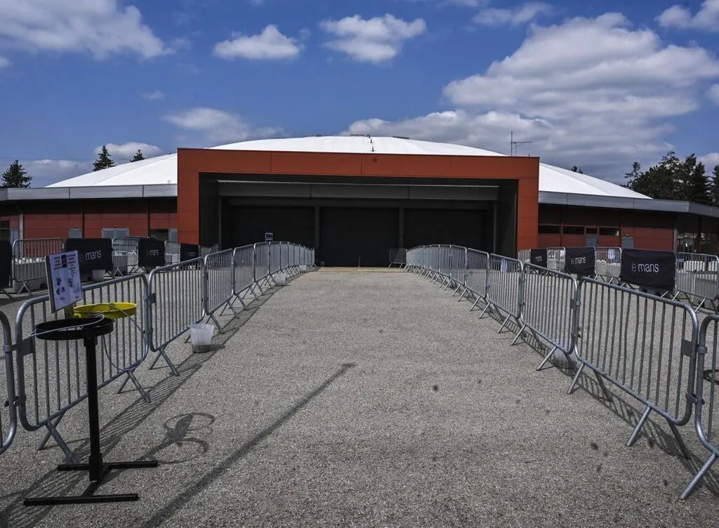 Au Parc des expositions du Mans, le « centre départemental de vaccination de grande capacité » ouvre mardi 20 avril 2021 à la rotonde, où le barriérage est déjà prêt. © Le Maine Libre – Denis LAMBERT