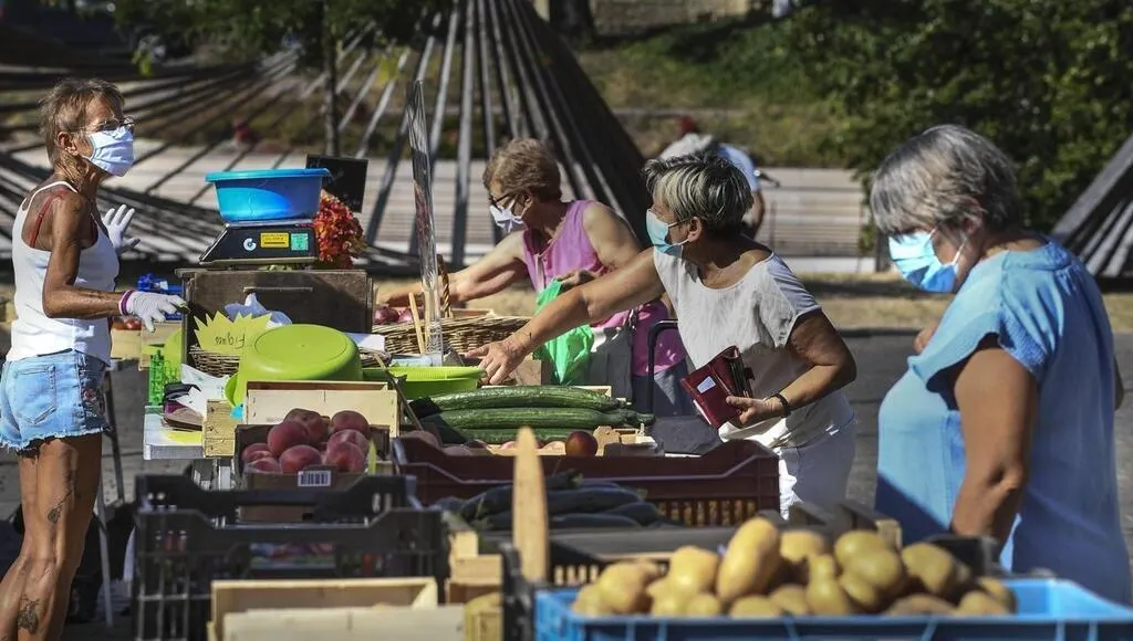 Le port du masque reste obligatoire en Sarthe en extérieur dans certaines circonstances, dont sur les marchés, comme ici aux Jacobins au Mans. © archives Le Maine Libre -Denis LAMBERT