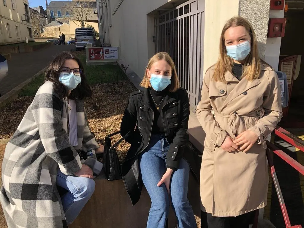 Le Mans, samedi 27 février 2021. Lya, Clara et Juliette, étudiantes en LEA (langues étrangères appliquées) respectent le couvre-feu mais critiquent les décisions « incohérentes et contradictoires » du gouvernement. ? © Le Maine Libre