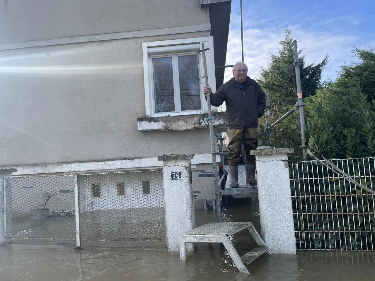 « Il y a beaucoup de solidarité entre voisins. Daniel m’a aidé à vider mon garage et à mettre mes meubles sur parpaings », se réjouit-il. De son jardin inondé, il peut voir les piles de l’ancien pont du Petit Anjou, effondré en 1910.