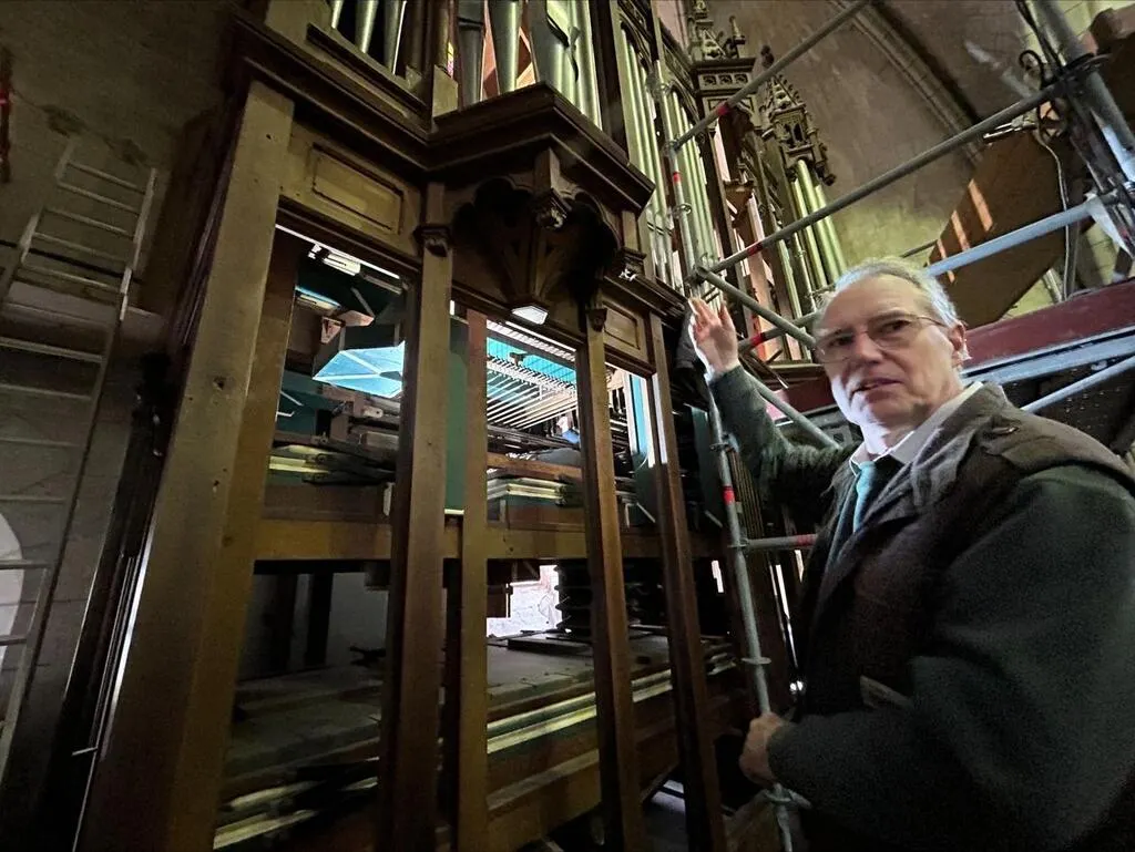 Jacques Nonnet, des Orgues Giroud, est le facteur en charge de la restauration de l’orgue de l’église Saint-Thomas de La Flèche (Sarthe). Un chantier colossal parti pour durer deux ans. © Ouest-France