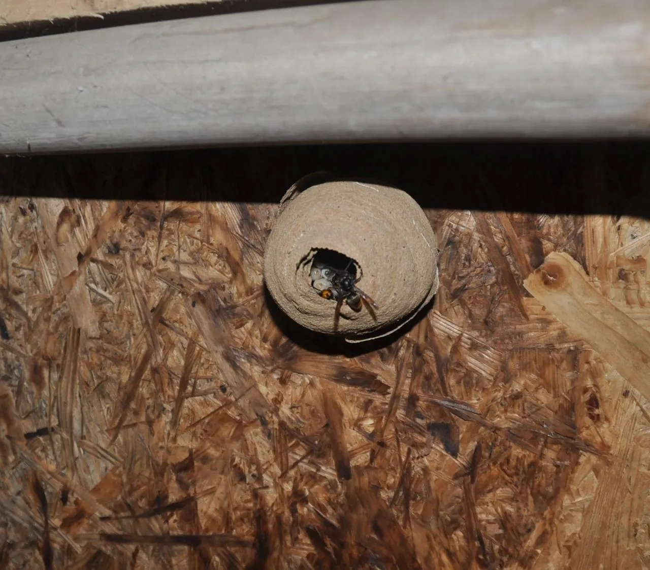 Un nid primaire tel qu’on peut en trouver en février, avec une reine et des larves. Ici dans un cabanon. © Photo Fernand Pineau/GDS49