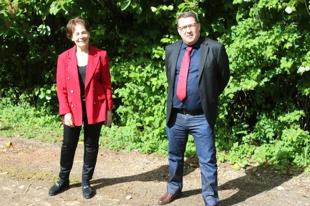 Cécile Bayle de Jessé, 73 ans, cheffe d’entreprise, et Stéphane Martini, 54 ans, chef de cuisine dans la Marine marchande, se présentent sous l’étiquette Debout la France aux élections départementales, dans le canton de Mamers (Sarthe).