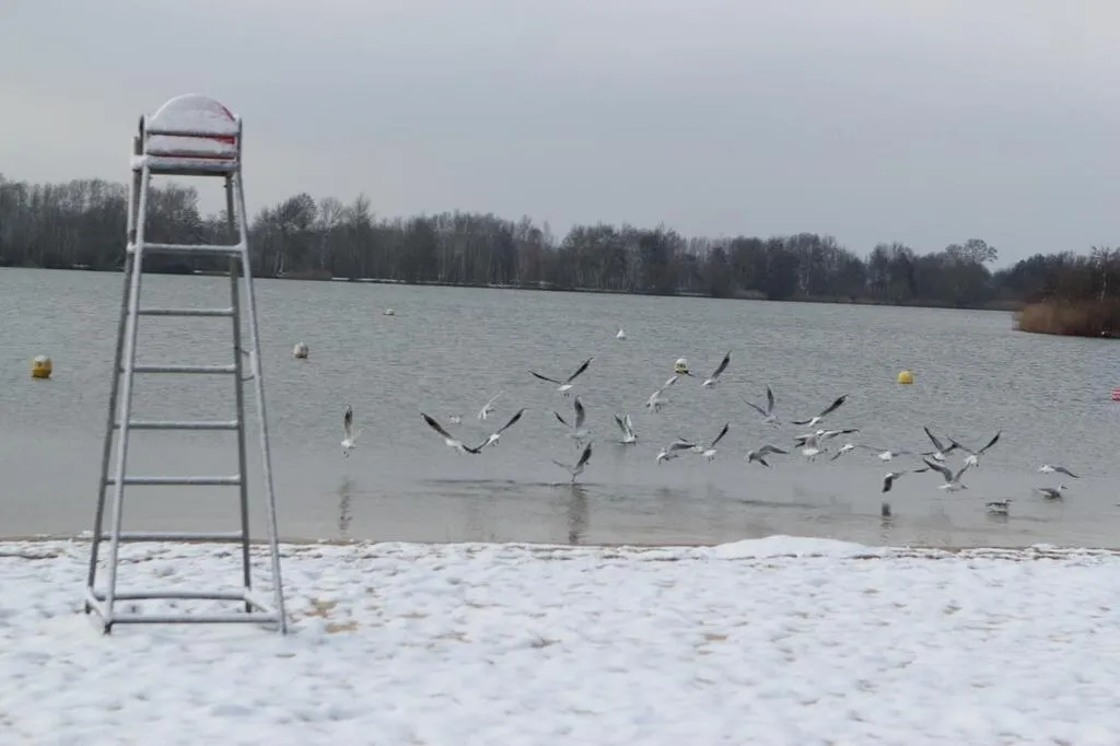 Sur base de loisirs de La Monnerie, à La Flèche, les mouettes profitent de l’absence du surveillant de baignade pour batifoler sur le rivage. Le Maine Libre