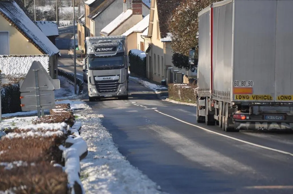 Les poids lourds reprennent la route sur la D300. Le Maine Libre
