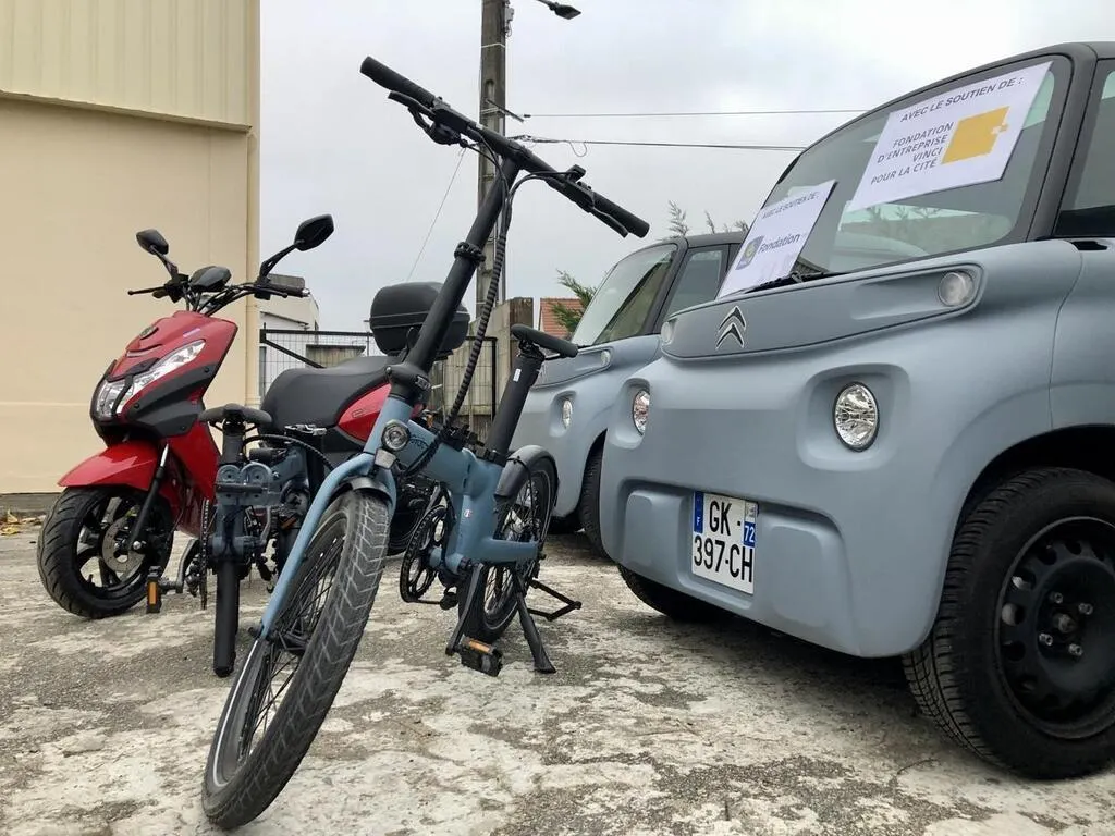 Citroën Ami, scooters, vélos pliants : au Mans, l’association Carbur’Péra a reçu de nouveaux véhicules neufs, la plupart électriques. Ils ont été présentés par la directrice, Cathy Bataille. © Le Maine Libre