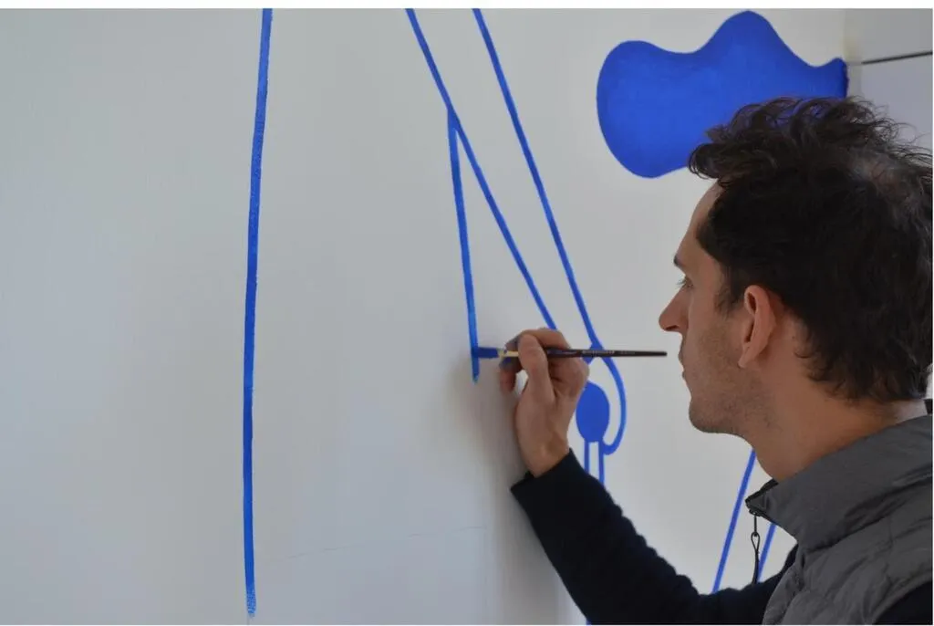 Durant sa résidence au centre d’art, Vincent Godeau a réalisé une fresque murale.. © Ouest-France