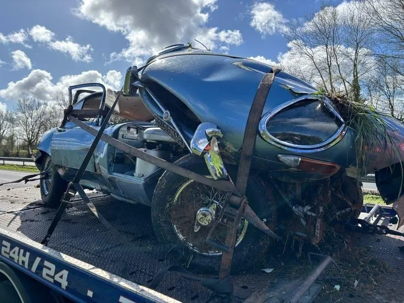 Reconnues pour leur carrosserie monocoque au capot interminable, deux Jaguar Type E ont été sérieusement endommagées lors d’un accident de la route, en Maine-et-Loire, ce samedi 14 mars 2026.