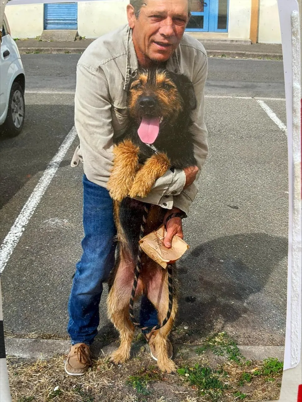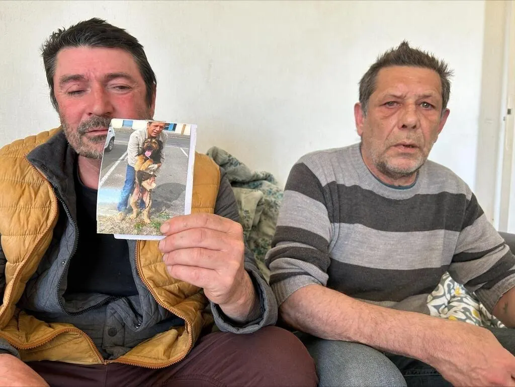 « Il n’aurait jamais mordu », assurent Yannick Lemesle et son ami Dany Taugourdeau, propriétaire du chien qui a été abattu par un gendarme, le vendredi 28 mars 2025, à La Flèche (Sarthe). © Ouest-France