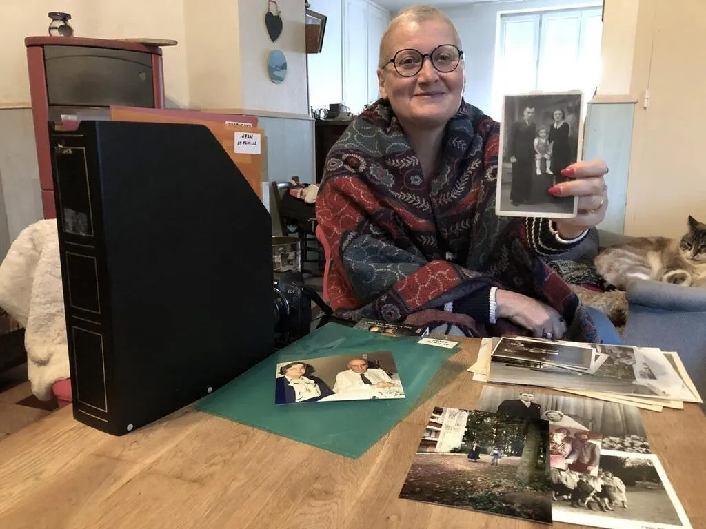 Sandrine Weil avec la photo qui illustre la couverture de son roman familial : ses grands-parents et son père, Jean, en février 1941. © Le Maine Libre