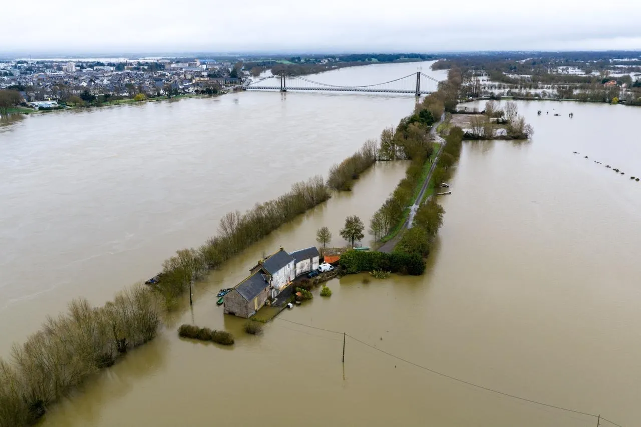 Au plus fort de la crue, sur le tronçon Loire aval entre Les Ponts-de-Cé et Mauves-sur-Loire, le niveau de la Loire a atteint les 5,89 m, le 22 février, à Montjean-sur-Loire, et les 5,87 m le lendemain, à Ancenis-Saint-Géréon et Liré (Orée-d’Anjou). © Franck Dubray / Ouest France