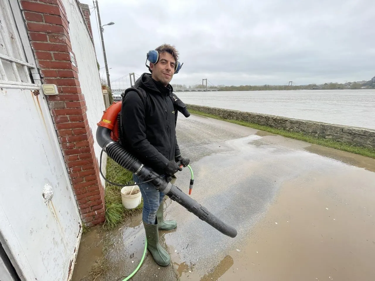 Jeudi, j’avais encore 3 cm d’eau. C’est redescendu. On a de la vase partout, donc on ventile et on la repousse au souffleur »,