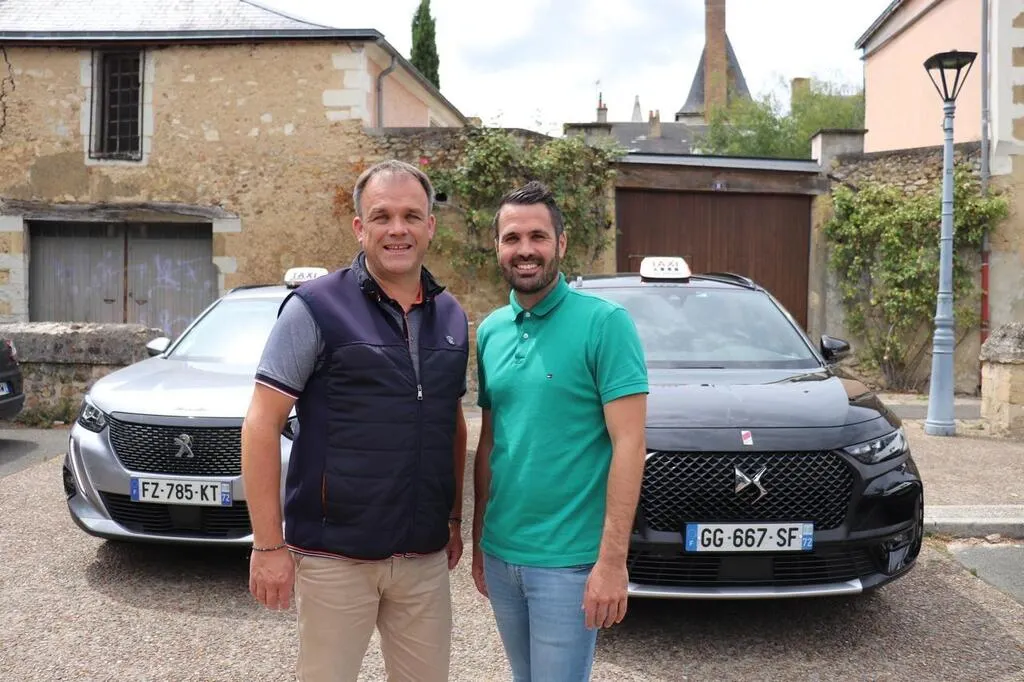 Ludovic Fleury et Fabien Joly sont tous les deux chauffeurs de taxi, installés à Bazouges-Cré-sur-Loir (Sarthe). © Ouest-France