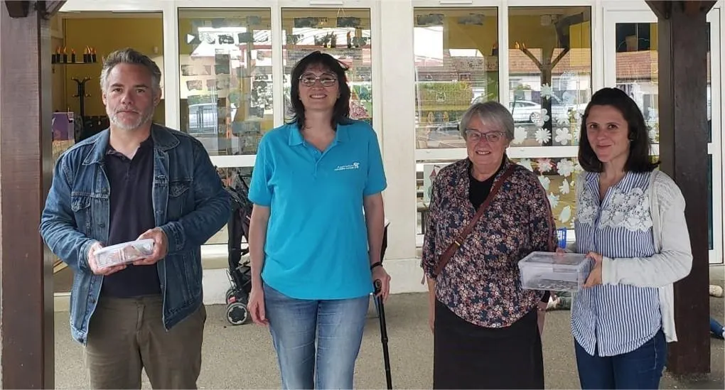 De g. à dr : Christophe Boivin directeur de l’école Roland-Deret de Saint-Gervais-en-Belin, Estelle Mille présidente de Leucémie espoir 72, Martine Beucher (association Vaincre la mucoviscidose), Adeline Savin directrice de l’école Jean-Baptiste-Galan de Laigné-en-Belin. © Le Maine Libre